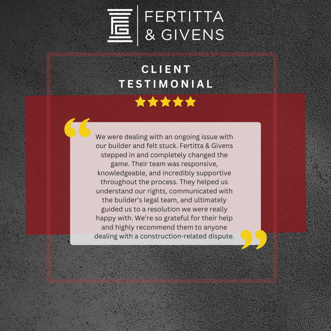 Whether you serve on an HOA board or are a homeowner dealing with community-wide defects, legal action may be necessary to fix the problem and protect everyone’s investment. At Fertitta & Givens, we fight for entire communities when builders fail to meet their obligations.